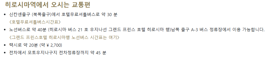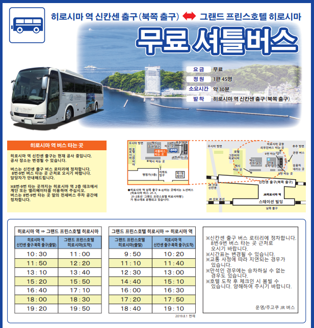 대부분 히로시마 역에서 오시는 것으로 기준하면, 호텔 송영버스를 이용하면 된다.